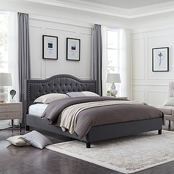 Beautiful Upholstered Queen Dark Grey Colour Frame Onyx Metal